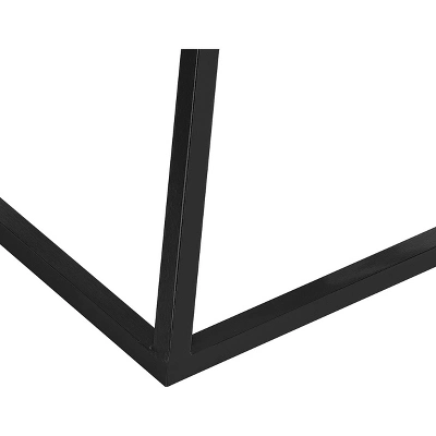 - Square marble print top and geometric metal base combine for a sleek modern look