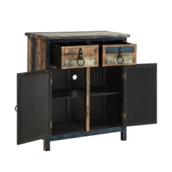 - Bertolli two-door accent cabinet with adjustable shelves from 55 Downing Street. Decorative pattern of concentric squares on the front.