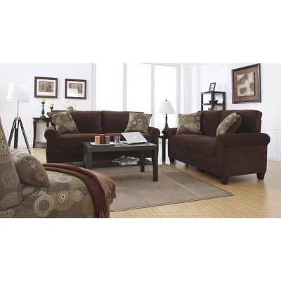 - Rolled arms, plush cushions and soft fabric create a cozy, contemporary style that completes any home decor