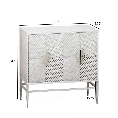 This white washed cabinet is designed with minimalist style along with a stable structure to make a unique statement, which provides powerful practicality rather than a household adornment. With plenty of space to offer, utilize the casual two-door cabinet featuring two-tier storage to minimize clutter while keeping select essentials within easy reach, or display your favorite décor on the spacious upper counter. With decorative fluted doors add beauty and enhances the artistic sense of the entire home.