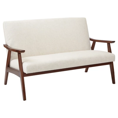 Nothing draws forth an aura of Zen and simplicity like the Davis Loveseat, the perfect addition to your home’s happy environment. This mid-century modern inspired design offers clean lines and a hint of subtle radiance, while easy-care fabric covers a plush cushion supported by a sturdy, solid wood frame. This piece creates a modern chic living room environment with its low profile seating. It’s an eye-catchingly distinct choice for any living room that craves class and notes of current style.