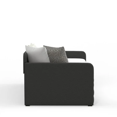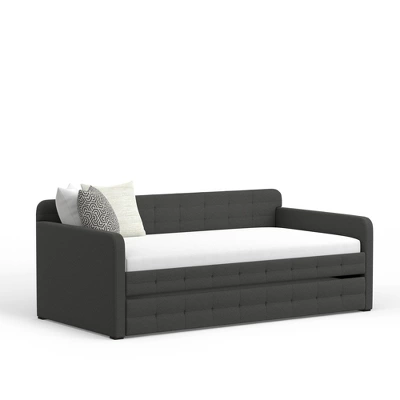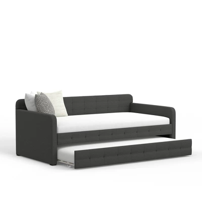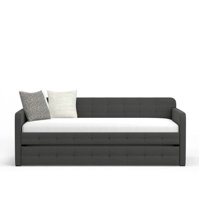 Combining the comfort of your favorite couch with an extra spot to rest, you’ll love this versatile accent piece in your guest room or living spaces. Your days with an uncomfortable pull-out sofa or leaky air bed will be a thing of the past. Skillfully crafted with a solid and engineered hardwood frame this stylish daybed with trundle bed is finished with a lush polyester fabric that is soft to the touch while durable to hold up to heavy use. The daybed features notched arms, curved back and adds a classic mid-century look that will add to nearly any existing decor. Both the Daybed and Trundle accommodate twin size mattresses. Simply roll the built-in trundle deck out from under the sofa and you have the perfect spare bed for a guest to get a good night’s sleep.