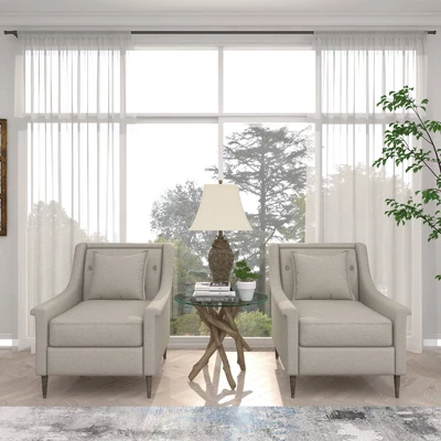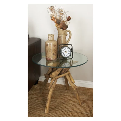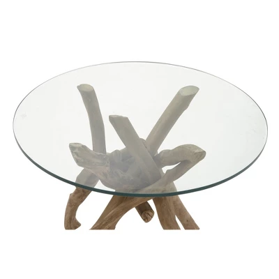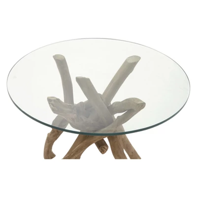 - •Thick driftwood branches support the smooth and rounded glass top