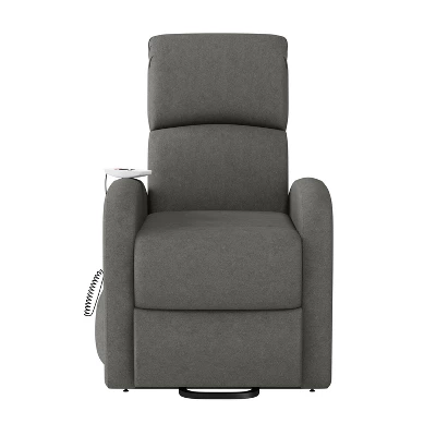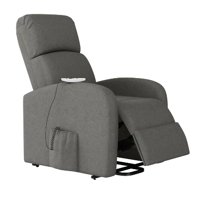 The Loy power lift and recline chair allows you to rise out of your seat with ease and also features massage and heat options which will ensure your total comfort. The infinite position recliner transitions between reclining, sitting and lifting and can stop at any position in-between with the easy to use wire attached remote. This modern styled power lift chair can be extremely helpful for seniors or people with mobility challenges and will be a perfect addition to living rooms, bedrooms, theater rooms and media rooms.