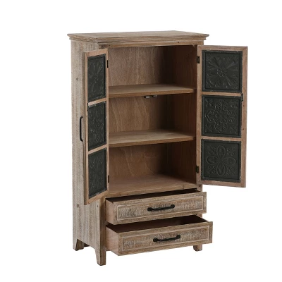 - Cabinet body is constructed using high quality and durable fir wood and manufactured wood in a primitive wood finish to give the cabinet a rustic style