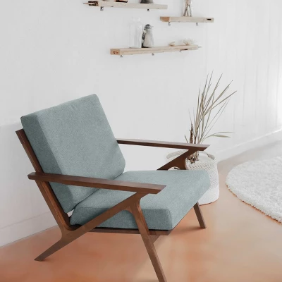 Relax in style with this handsome armchair from Zenvida. The accent chair’s solid wood frame has crisp lines and beautiful, soft polyester upholstery around high-density foam. Available in multiple colors to match any decor, bring contemporary design and a timeless look to your living room thanks to Zenvida’s arm chair. It cuts a classic figure, and will look fantastic paired with a decorative throw, a jaunty pillow, or a simple ottoman. Add mid century modern retro styling to your interior with an iconic accent lounge chair. Made in Malaysia.