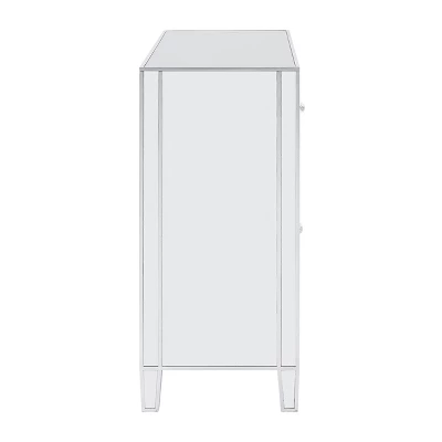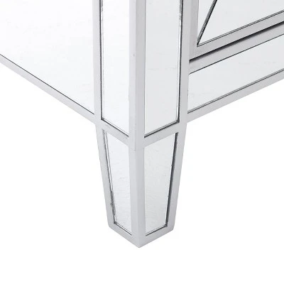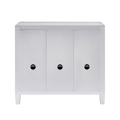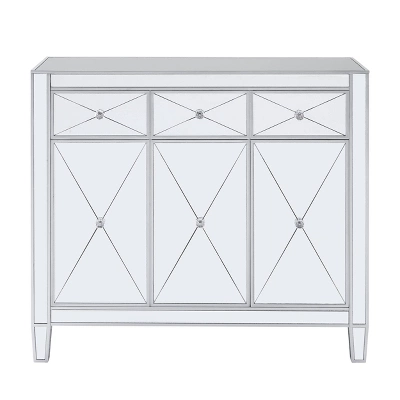 Enjoy glam style from anywhere in the room with the Aiden Lane Monroe 3-Door Mirrored Cabinet. Small space silhouette and multipurpose design make this mirrored storage chest the focal point of any room. Spacious cabinets hide away toys, fine china, or extra blankets, while drawers stow utensils or mail. Station this art deco cabinet as a sideboard buffet in your formal dining room, or place in your living area as a convenient storage console ready for your movie night marathon.
