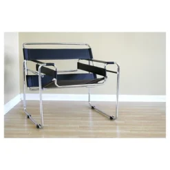 - Faux leather upholstery with panel stitching