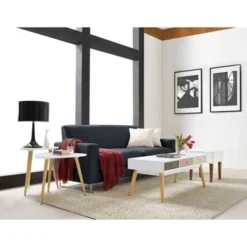 Adair Mid-Century Modern Sofa Couch With Armrest Pockets Tufted Linen Fabric – Mellow