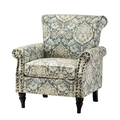 Designed to be a shining focal point wherever it settled, you can rely entirely on this charming accent armchair. Gathering all fashion elements in one piece, it’s gonna wow your home seating arrangement with integrated traditional details and contemporary aesthetics. Classic rolled arms and seatback, delicate nailhead trim, as well as various selectable stunning patterns, work together to make this impressive statement. Its beautifully carved solid wood legs support the upper sturdy wooden frame ensuring reliable durability and high quality, plus comfortable foam filling, textured polyester upholstery, and built-in pocket spring to raise the seating amenity. This practical art of work boasts unique glamour adding many characteristics to modern home decoration. Fit well in the living room, bedroom, office, and other scenes thanks to the contemporary yet classic outlook, all you need to do is add this wonderful piece to your cart and bring it home!Item Size:31.2″Wx30.5″Dx33.8″HSeat size:19″Wx20.7″Dx18.5″H
